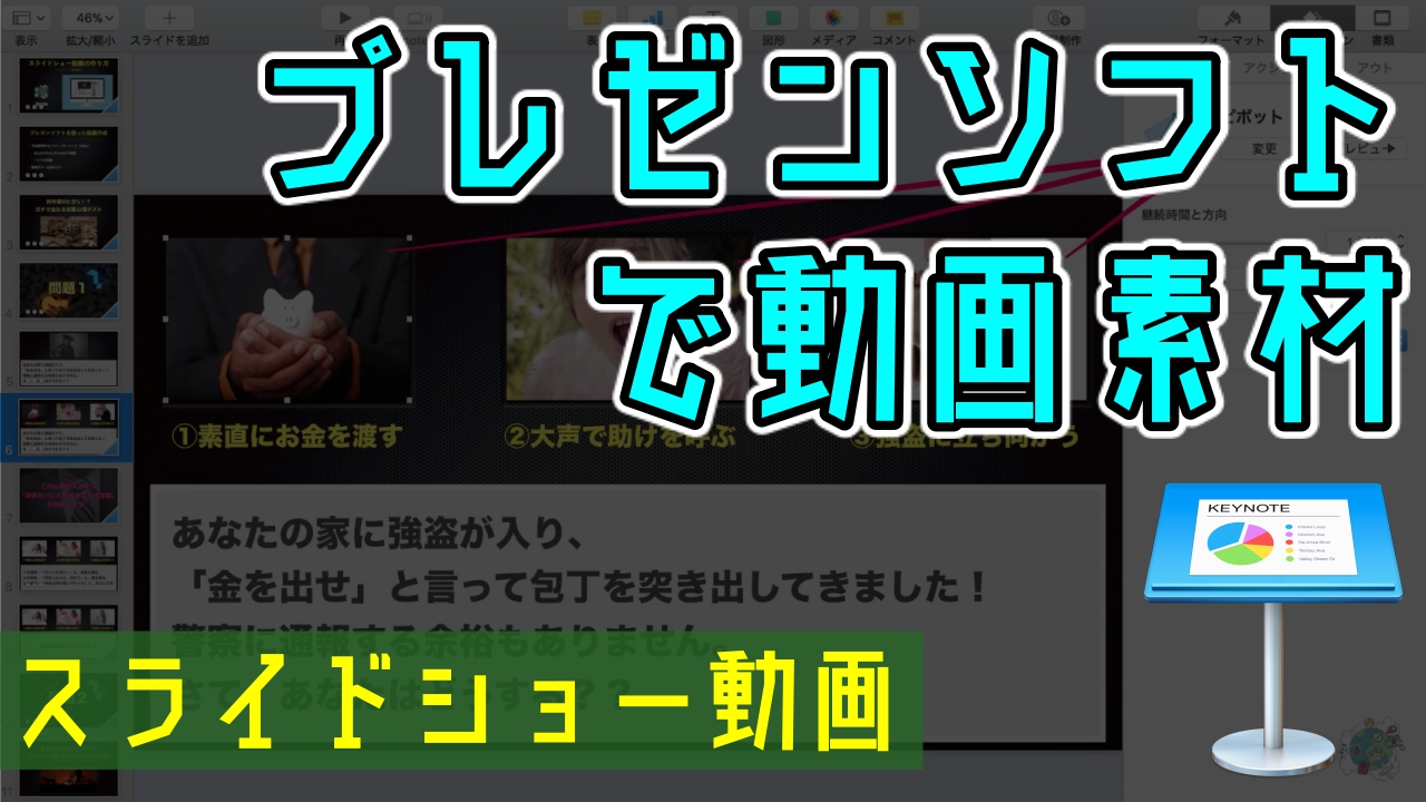 プレゼンソフトを使ってスライドショー動画の素材を作成する方法について解説しています。